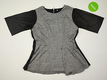 Bluzka damska peplum XL - Fason: peplum z rozkloszowanym dołem, podkreśla talię - Rękaw: długi - Dekolt: okrągły, wykończenie lamówką w kontrastowym, czarnym kolorze - Kolor/wzór: melanż szaro-cza...