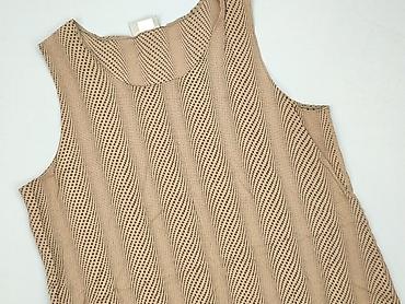 Beżowa damska bluzka bez rękawów - Krój: prosty, lekko luźny, bez rękawów - Dekolt: w kształcie litery V z podwójną listwą i subtelną aplikacją/ozdobą z kryształkami przy środku - Materiał: 100% p...