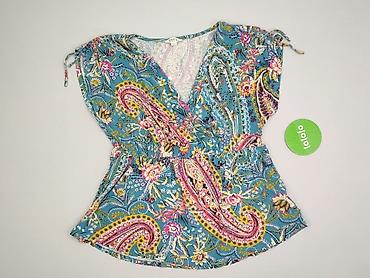 Bluzka damska z krótkim rękawem, wzór paisley/ornamentalny - Krój: lekko dopasowany, z zaszewkami, okrągły dekolt - Rękawy: krótkie, delikatnie bufiaste - Dół: lekko zaokrąglony, rozcięcia po boka...