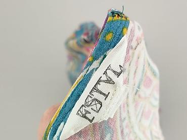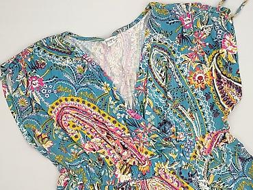 Bluzka damska z lekkiej, zwiewnej tkaniny - Krój: luźny, prosty, z krótkim rękawem typu kimono; dekolt w kształcie litery V - Wzór: geometryczno‑mozaikowy, turkusowo‑niebieski z akcentami bieli i ...Rozmiar: