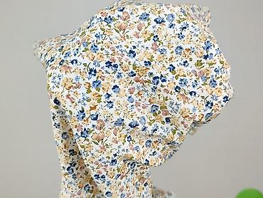 - Wzór: gęsty nadruk drobnych kwiatów w odcieniach niebieskiego, beżu, różu i zieleni na jasnym tle