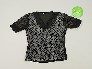 Bluzka damska z długim rękawem, czarna, rozmiar L. - Krój: kopertowy dekolt w kształcie V z delikatnym marszczeniem pod biustem, dopasowana talia. - Rękawy: półprzezroczyste, teksturowane (żakardo...
