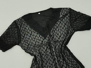 Bluzka damska RESERVED, rozmiar S - Kolor: czarny - Materiał: lekka, półtransparentna siateczka/koronka z pionowymi pasami i delikatnym, kwiatowym wzorem - Krój: prosty, lekko luźny - Rękaw: krótk...