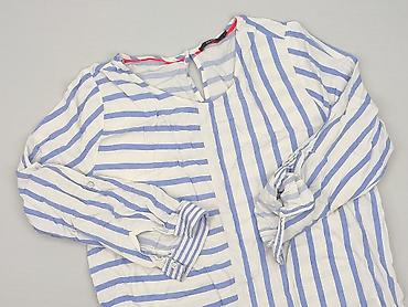 Bluzka damska CECIL, rozmiar M. - Fason: luźny, z delikatnie wydłużonym tyłem; długi rękaw z mankietami na guzik - Dekolt: okrągły z krótką listwą na 2 guziki - Wzór: granatowe tło w drobne prążki...