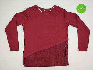 Bluzka damska z długim rękawem, kolor bordowy. - Rozmiar: L (metka na zdjęciu) - Skład: 95% poliester, 5% spandex - Krój: swobodny, z zaokrąglonym dołem wydłużonym z tyłu - Detale: przód z ...