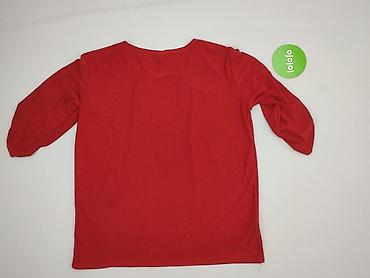 Bluzka damska w intensywnym czerwonym kolorze. - Fason: prosty, lekko taliowany, dekolt okrągły - Rękawy: 3/4 z delikatną falbaną przy mankiecie - Rozmiar z metki: 8 (proszę porównać z własnymi wy...