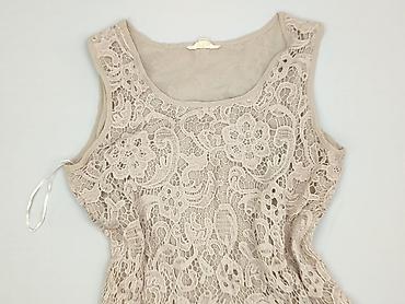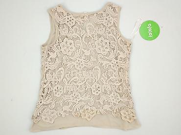 Koronkowa bluzka damska bez rękawów - Model: przylegająca bluzka z okrągłym dekoltem - Materiał: delikatna koronka w kwiatowy wzór, na podszewce - Kolor: jasny beż/ecru - Rękawki: krótkie skrzydeł...