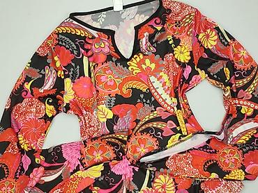 Bluzka damska MABALJE, rozmiar XL - Fason: prosta bluzka z krótkim rękawem, okrągły dekolt - Wzór: intensywny, wielobarwny print w stylu paisley/kwiaty, miks turkusu, koralu, pomarańczu, granatu i...