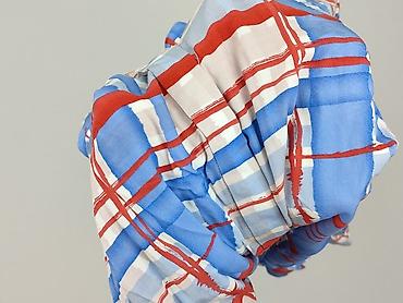 - Wzór: akwarelowa krata w odcieniach niebieskiego i beżu z czerwonymi akcentami