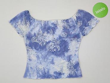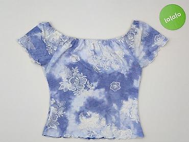 Bluzka damska hiszpanka XS - Krój: hiszpanka z odkrytymi ramionami - Rękawy: bufiaste 3/4 z gumką przy mankiecie - Dół: lekko rozkloszowana falbanka - Materiał: lekki, gęsto marszczony/ściągacz na...
