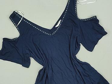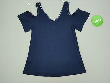 Bluzka damska Y&P, kolor denimowy/niebieski. - Krój: luźniejsza góra z zakładanym dekoltem w kształcie litery V, lekko nietoperzowe rękawy. - Ozdoby: połyskujące nity/dżety na karczku i ramionach ...