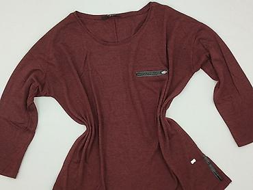 Bluzka damska EWITA, rozmiar 38. - Kolor: melanżowa czerwień (bordo). - Fason: luźniejszy krój z obniżoną linią ramion, dekolt łódka. - Rękawy: 3/4 z dekoracyjną czarną taśmą wzdłuż zewnętrznej czę...