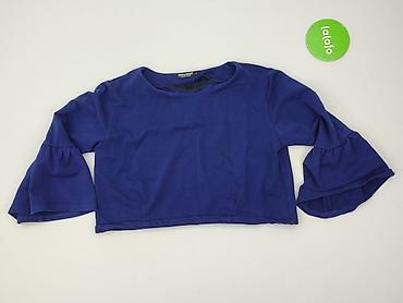 Bluzka damska z dzianiny, kolor granatowy. - Krój: luźniejsza góra z opadającą linią ramion/skrzydełkowymi rękawkami (krótki rękaw), dół lekko dopasowany. - Materiał: cienka, elastyczna dzianina s...