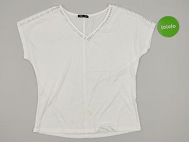 Biała bluzka damska z krótkim rękawem - Kolor: biały - Krój: luźny, lekko pudełkowy - Dekolt: szeroki, zaokrąglony - Rękawy: krótkie - Tył: pionowa zakładka/delikatne pęknięcie dekoracyjne - Długo...