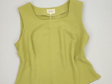 Żółta bluzka damska bez rękawów - Rozmiar z metki: 38 - Krój: luźny, lekko zaokrąglony dół, przedłużony tył, delikatnie opadające ramiona (cap sleeves) - Dekolt: w kształcie litery V - Materiał: c...