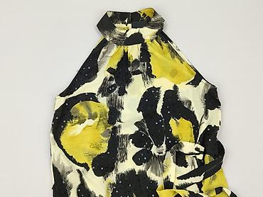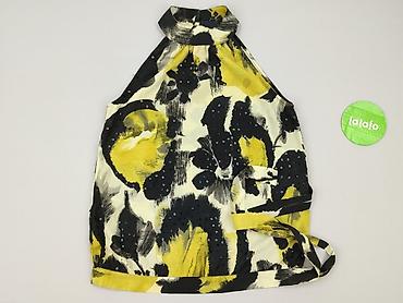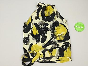 Bluzka damska RESERVED, rozmiar S - Krój: luźny, bez rękawów, z delikatnym ściągaczem u dołu - Kolorystyka: czarny z przodu z dużym, kwiatowym nadrukiem w odcieniach żółci, beżu, bieli i niebieski...