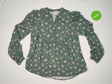Bluzka damska BLUE, rozmiar 38. - Kolor: przygaszona zieleń/morski (dusty green) z kwiatowym nadrukiem w odcieniach różu, bieli, szarości i czerni. - Krój: luźniejszy, z gumką u dołu, dzięki czemu...