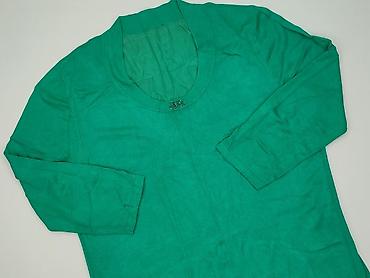Zielona bluzka damska z długim rękawem - Krój: luźniejszy, delikatnie rozkloszowany od linii biustu, zaokrąglony dół - Dekolt: szeroki, okrągły - Zapięcie: krótka listwa z trzema jasnymi guzikami ...