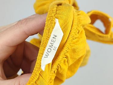 Bluzka damska WOMEN, rozmiar S - Kolor: intensywny musztardowo‑żółty - Krój: luźny, swobodny, z szerokim dekoltem na gumce (można nosić klasycznie lub opuszczoną na ramiona) - Rękawy: krótkie, lek...