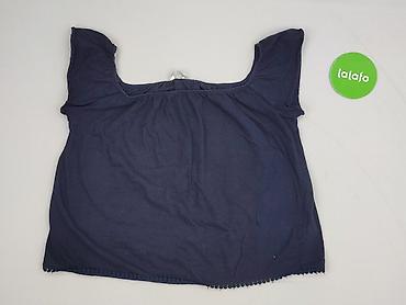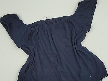 Bluzka damska z dzianiny, kolor granatowy. - Krój: luźniejsza góra z opadającą linią ramion/skrzydełkowymi rękawkami (krótki rękaw), dół lekko dopasowany. - Materiał: cienka, elastyczna dzianina s...