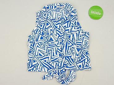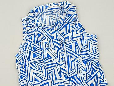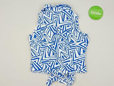 Bluzka bez rękawów Reserved - Damska, rozmiar 38 - Biała w czarny, geometryczny print - Zapięcie na guziki na całej długości - Klasyczny kołnierzyk - Przewiewny, lekki materiał - Zaokrąglony dół, ...