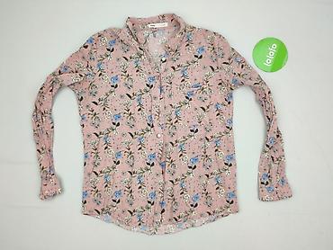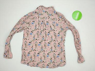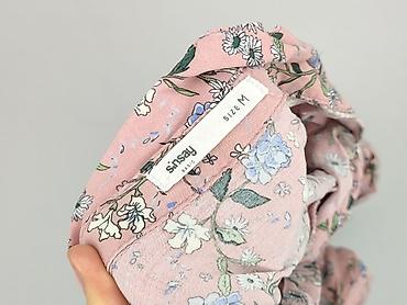 Bluzka damska Sinsay, rozmiar M - Krój: luźny, z dekoltem w kształcie litery V; tył delikatnie dłuższy. - Rękawy: długie, lekko bufiaste, zakończone mankietem na guzik. - Wzór: różowo‑łososiowy, k...