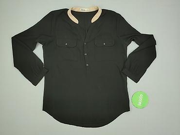 Bluzka damska INDASKA (Indiska), rozmiar M - Krój: luźny, lekko taliowany, z krótkim rękawkiem - Dekolt: okrągły - Zapięcie: rząd małych guzików z przodu - Wzór: czarne tło w drobne białe listki (...
