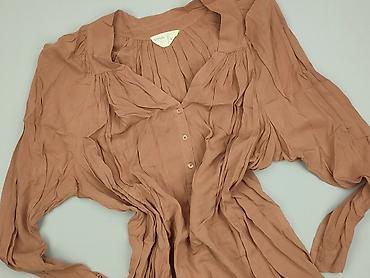 Bluzka damska Blue Chameleon - Rozmiar: EU 42 - Kolor: ciepły brąz - Krój: luźny, lekko rozszerzany, z delikatnymi zakładkami przy dekolcie - Rękawy: krótkie, falbaniaste - Zapięcie: rząd małych g...