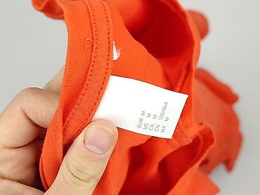Pomarańczowy top damski marki Sinsay w rozmiarze M. Charakteryzuje się dekoltem typu hiszpanka oraz krótkimi rękawami. Z przodu zapinany na guziki, dół wykończony falbanką. Wykonany z dzianiny, ide...Rozmiar: