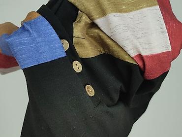 - Kolorystyka: czarny korpus; rękawy w szerokie, kolorowe pasy (odcienie czerwieni, musztardy, niebieskiego, turkusu, pomarańczu, beżu i brązu). Mankiety w kolorze czarnym.
