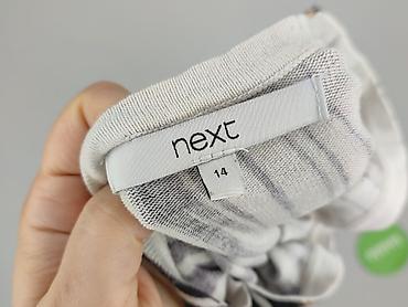 Bluzka damska w paski, rozmiar EU 42 (UK 14). - Krój: luźny, z krótkim rękawem i okrągłym dekoltem - Zapięcie: rząd guzików na plecach - Wzór/kolor: poziome pasy w odcieniach błękitu, musztardoweg...