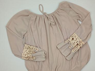 Bluzka damska z koronką, beżowa - Fason: luźny, zapinany częściowo na guziki z przodu - Rękaw: 3/4 - Dekolt: w serek - Ozdoby: szerokie wstawki z koronki z przodu - Materiał: 97% wiskoza, 3% spand...