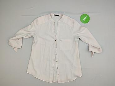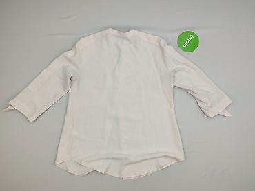 Biała damska bluzka Made in Italy, rozmiar M - Fason: luźny, lekko wydłużony tył (zaokrąglone wykończenie dołu), długi rękaw z szerokim mankietem - Kołnierzyk: klasyczny, ozdobiony subtelną lamówk...