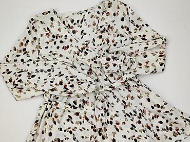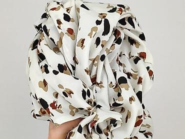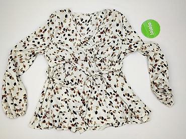 Bluzka damska SHEIN, rozmiar L (EU 40/42, US 8/10). - Wzór: drobny, abstrakcyjny print w odcieniach beżu, bieli i czerni - Krój: luźniejszy, z delikatnym marszczeniem w talii podkreślającym sylwet...