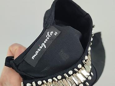 Czarna damska bluzka Trendy 18, rozmiar M. - Fason: dopasowany, z krótkim rękawkiem typu cap i okrągłym dekoltem. - Ozdoby: połyskujące aplikacje/kryształki z przodu ułożone w promienisty wzór. - ...