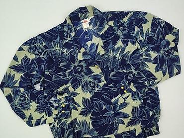 Bluzka damska Reserved - Rozmiar: EU 38 (UK 10) – metka widoczna na zdjęciach - Kolor: granatowe tło - Wzór: wyrazisty, botaniczny nadruk w kwiaty i liście w odcieniach żółci, zieleni, czerwieni, ...
