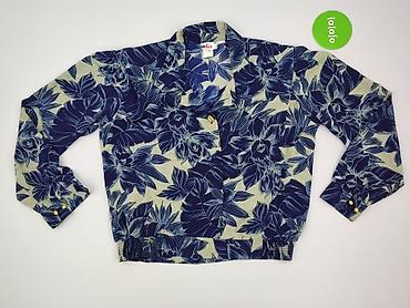 Bluzka damska z długim rękawem, rozmiar M. - Kolor bazowy: jasny błękit - Wzór: duży, malarski motyw kwiatowy w odcieniach fioletu, różu, kremu, zieleni - Krój: luźniejszy, lekko wydłużony dół; ra...