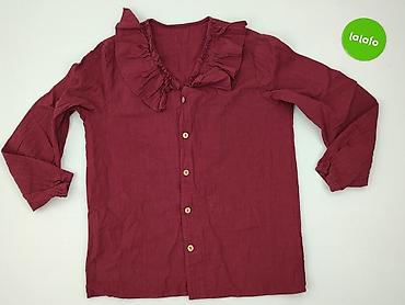 Bluzka damska z długim rękawem w kolorze bordo/ciemnej czerwieni. - Fason: klasyczny top z rozcięciem pod dekoltem i krótką listwą guzikową (3 guziki). - Dekolt: okrągły. - Rękaw: długi. - Materia...