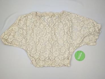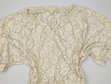 Ażurowa bluzka damska, kremowa/ ecru - Krój: prosta bluzka z półtransparentnym, ażurowym wzorem - Materiał: gęsto szydełkowana koronka z motywami okręgów u góry i siatkowym prześwitem w dolnej czę...