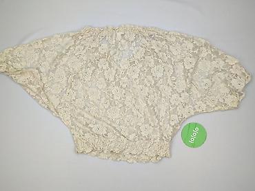 Koronkowa bluzka damska – kremowa, ażurowa - Model: luźny, prosty krój typu poncho/boxy - Materiał: miękka, elastyczna koronka z kwiatowym wzorem; półtransparentna - Kolor: ecru/kremowy - Dekolt: ...