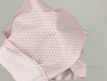 - Wzór/kolor: jasny róż z drobnymi, regularnymi białymi kropkami.