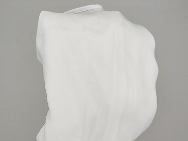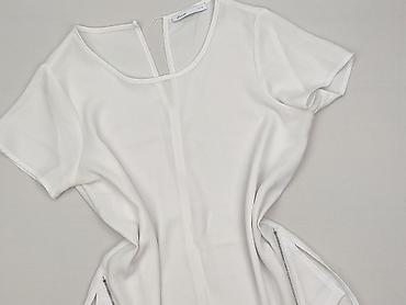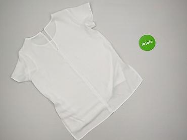 Biała bluzka damska z krótkim rękawem - Fason: luźny, oversize; lekko opadające rękawy - Dekolt: w kształcie litery V z krótką stójką - Materiał: 100% poliester (metka na zdjęciu) - Rozmiar z metk...