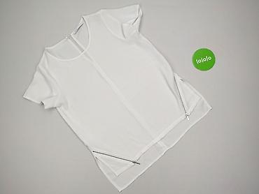 Biała bluzka damska M/L, Made in Britain - Krój: prosty, z krótkim rękawem i okrągłym dekoltem - Rozmiar z metki: M/L - Skład materiału: 95% poliester, 5% elastan – miękka, elastyczna dzianina o d...