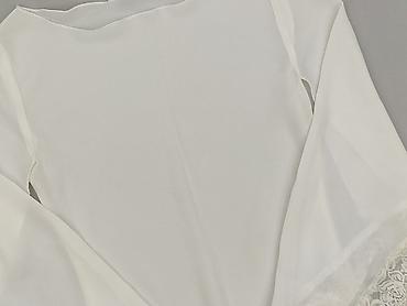 Bluzka damska, biała, rozmiar L. - Krój: prosty, z okrągłym dekoltem - Rękawy: długie, bufiaste z szerokim marszczonym ściągaczem przy mankietach - Detale: pionowa, koronkowa wstawka z przodu; sub...