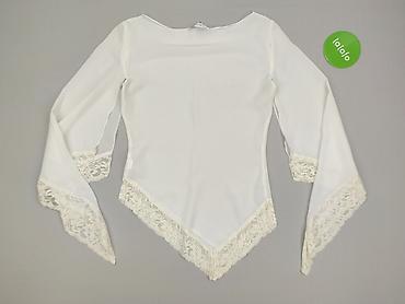 Biała damska bluzka z koronkowymi rękawami - Rozmiar: M (metka na zdjęciu) - Materiał: 100% poliester - Krój: prosty, lekko luźny - Długość rękawa: długi - Rękawy i ramiona z delikatnej koronki o ...
