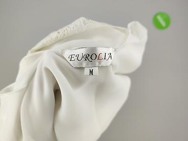 Bluzka damska Eurolia, rozmiar M. Kolor: biały/ecru. Model o romantycznym charakterze z długimi, rozszerzanymi rękawami i ozdobnymi, koronkowymi wykończeniami u dołu oraz przy mankietach. Dół bluzki zakończony w szpic, co optycznie wysmukla sylwetkę. Dekolt łódka.