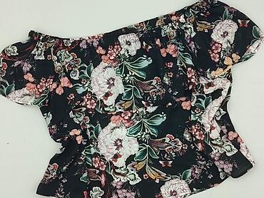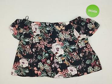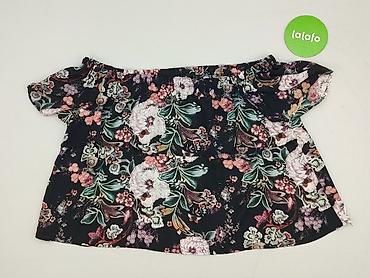 Bluzka damska HOUSE, rozmiar XL - Krój: hiszpanka/cold shoulder – odkryte ramiona z krótkimi, falbaniastymi rękawami i szerokimi ramiączkami. - Wzór: tropikalny print na czarnym tle – hibiskusy, l...