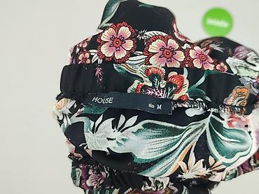 Bluzka damska HOUSE, rozmiar M. - Krój: luźna, z krótkim rękawkiem typu kimono/cap, dekolt łódkowy. - Przód: lekko transparentna, zwiewna tkanina z pionowymi, delikatnymi pasami i wyrazistym, kwia...