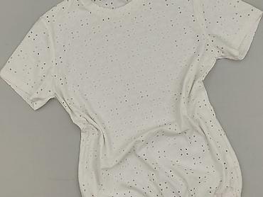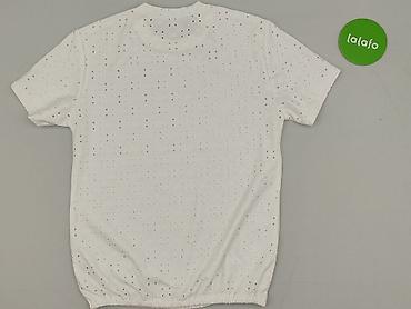 Biała bluzka damska z krótkim rękawem, rozmiar M. - Delikatny, ażurowy wzór w romby na całej powierzchni - Okrągły dekolt - Miękki, elastyczny materiał: 95% poliester, 5% elastan - Lekko teksturow...