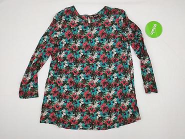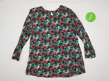 Damska bluzka z długim rękawem, rozmiar M - Fason: klasyczna bluzka z okrągłym dekoltem, długi rękaw - Wzór: duży, dekoracyjny nadruk kwiatowy w odcieniach granatu, bieli i szarości; ciekawy, asym...